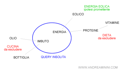 Nell'esempio precedente il primo risultato mostra l'associazione della keyword "imbuto" con l'energia chimica delle proteine. Si tratta però di una metafora. E' invece molto probabile che nel corso del tempo si rafforzi la relazione con l'energia eolica.