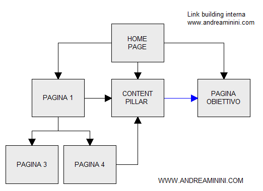 Si può anche seguire la strategia dei content pillar. Una pagina sviluppata su parole chiave molto vicine a quella principale di interesse, in cui inserire il link verso la pagina obiettivo, in una posizione evidente e non marginale.