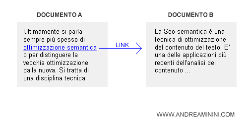 Esempio. Se molti siti web linkano una pagina usando il testo di ancoraggio SEO, il motore di ricerca capisce che la pagina linkata parla di Search Engine Optimization anche senza aver analizzato il suo testo.