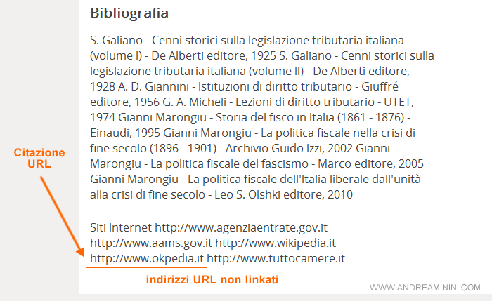 Una citazione è particolarmente chiara se consiste in un indirizzo Url senza link.