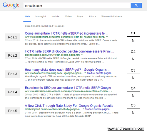 Il secondo risultato viene cliccato C2 volte. Il suo CTR è pari a C2/N, e così via.