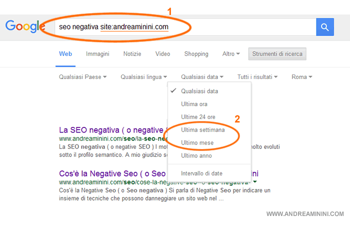E' utile associare alla query con il comando SITE: un'orizzonte temporale limitato per cercare soltanto nelle pagine del sito indicizzate di recente. Ad esempio, ultima settimana o ultimo mese.