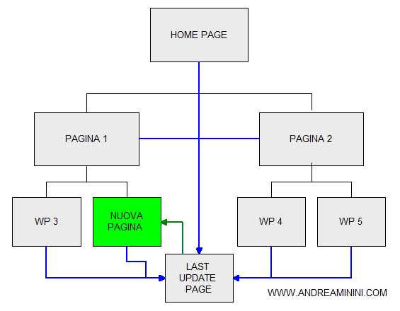 Nota. In questo modo, le nuove pagine sono linkate indirettamente da tutto il sito e hanno una maggiore probabilità d'essere indicizzate rapidamente dai crawler.