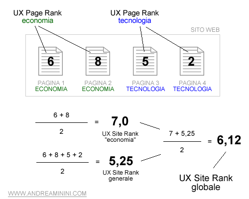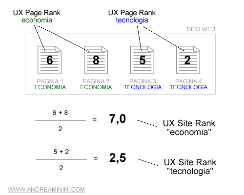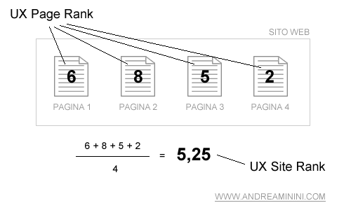 Viceversa, una singola pagina con elevato valore di UX Page Rank, è penalizzata quando si trova in un sito web con bassa UX Site Rank, perché eredita la cattiva reputazione del sito.