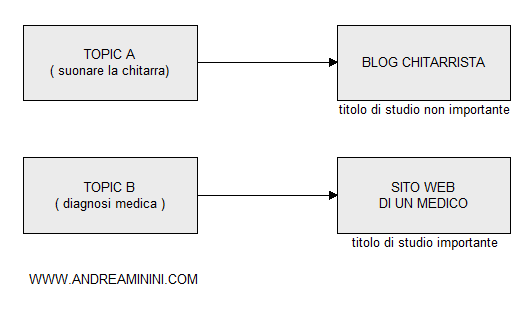 Se l'utente sta cercando un'opinione medica ( topic A ) allora è necessario che sia un medico a rispondere. In questo caso, il titolo di studio per l'autore del sito web è un elemento indispensabile ( es. informazione medica o farmaceutica ).