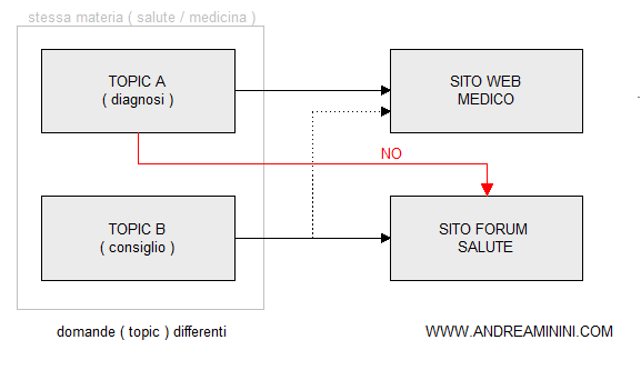 Viceversa, se l'utente sta cercando un consiglio dagli altri utenti ( topic B ) che si trovano nella sua stessa situazione ( es. malattia, tasse, ecc. ) anche un forum dove le persone raccontano le proprie esperienze personali potrebbe essere molto utile per il lettore.
