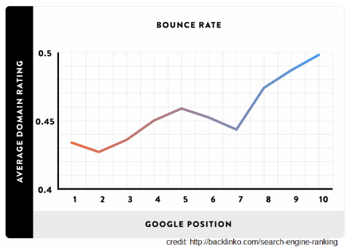 Il bounce-rate è uno dei fattori usati per calcolare l'esperienza utente su un documento. Secondo la ricerca, i primi risultati su Google hanno un tasso di rimbalzo inferiore al 50%.