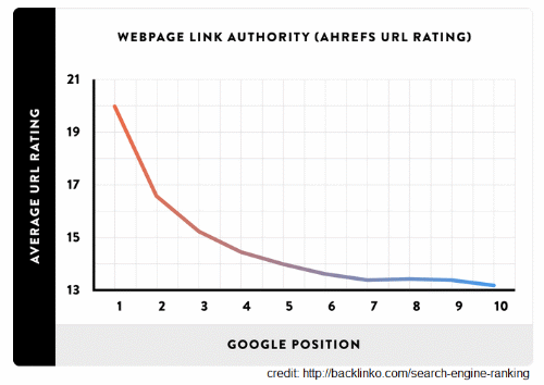 Analizzando le prime dieci posizioni sui risultati di ricerca, la ricerca rileva una forte correlazione tra la quantità dei link in entrata sulla pagina e il suo posizionamento su Google.