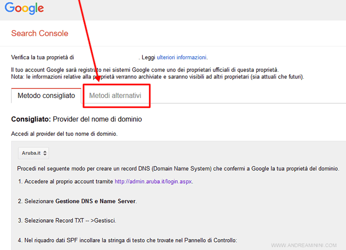 Ci sono diversi metodi alternativi per verificare la proprietà del sito.