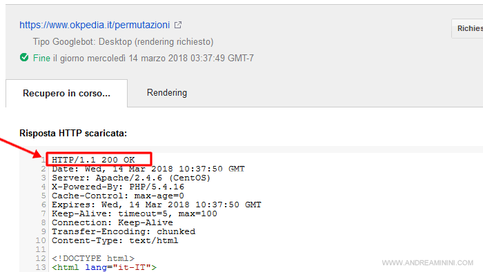 Nota. La risposta del server è molto importante per l'indicizzazione sui motori di ricerca. Una pagina web pubblica deve restituire sempre lo status 200 per essere indicizzata da Google.
