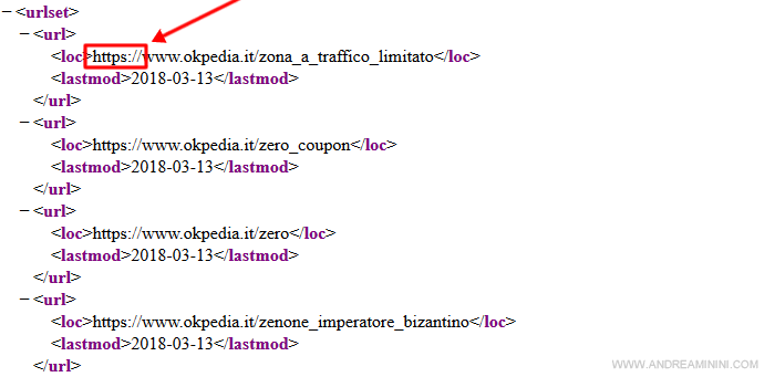 All'interno della nuova site map gli indirizzi Url delle pagine devono essere scritti con il protocollo https.