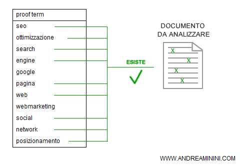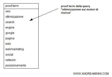 Si chiamano proof term, ossia parole chiave di prova o di esistenza, perché il search engine le utilizza per verificare la vicinanza di un documento a un particolare tema.