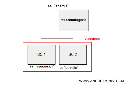 - Vicinanza. La vicinanza è la proprietà di due categorie di avere contenuti su argomenti simili. Usando i termini contenuti in due categorie vicine è sempre possibile costruire un discorso seguendo un filo logico.