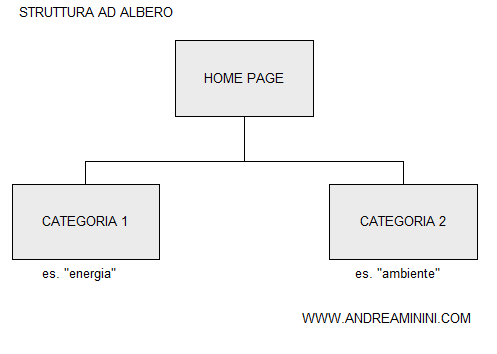 Il nodo principale dell'albero è l'home page mentre i nodi figli di primo livello sono le categorie, ossia gli argomenti principali trattati nel sito web.