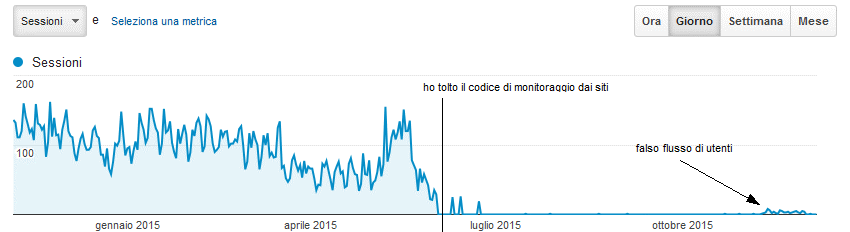 Nonostante io abbia tolto il codice di monitoraggio da sei mesi, su diversi siti web Analytics ha continuato a rilevare dei movimenti e un traffico di utenti. Non dovrebbero esserci... ma ci sono.