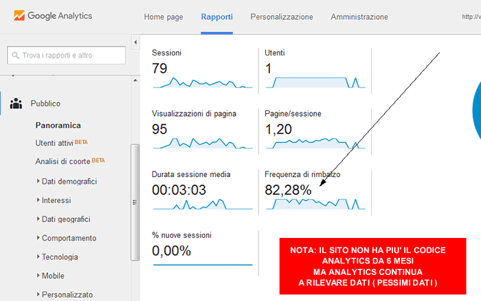 Me ne sono accorto solo perché ho tolto il codice di monitoraggio dal sito e, quindi, Analytics non avrebbe dovuto mostrare nessun dato.