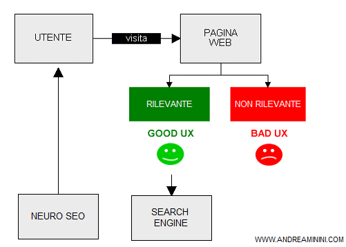 - Nella neuroseo, invece, l'obiettivo è stimolare il comportamento dell'utente che migliora la good UX rilevata dagli algoritmi del search engine sulla pagina web del sito, per migliorarne il posizionamento sui risultati di ricerca ( SERP ).
