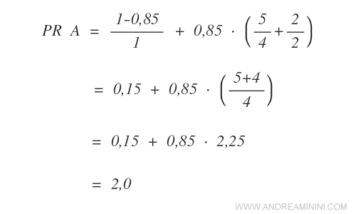 Per calcolare il page rank di una pagina si utilizza un'apposita formula.
