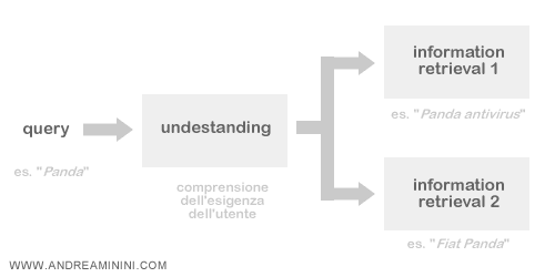 Ad esempio, la domanda "dove acquistare Panda" indica con chiarezza l'intenzione dell'utente di acquistare il prodotto. Viceversa, la domanda "come installare Panda" non manifesta lo stesso intento, si presuppone che l'utente abbia già il prodotto, non deve acquistarlo, ma non sa come installarlo sul computer.