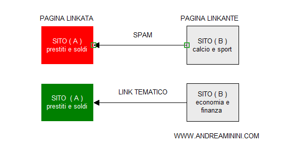 I search engine sono in grado di comprendere se il link è tematico oppure è spam, analizzando il campo semantico dei contenuti delle tue pagine web. Se le due pagine parlano dello stesso argomento, il link è accettato.