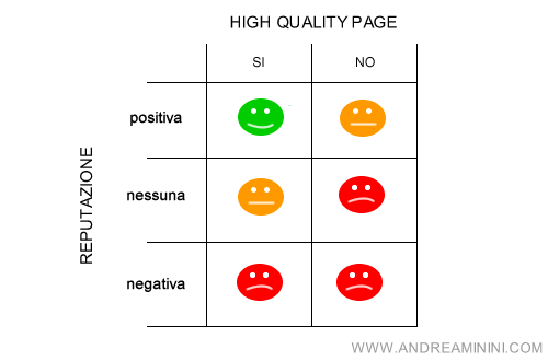 La reputazione del website ha molta importanza nella valutazione qualitativa delle singole pagine. Per comprenderlo è necessario analizzare le tre distinte fattispecie: