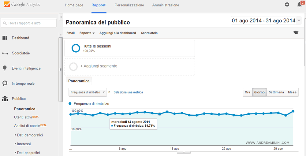 È un'informazione utile per capire quali pagine sono più performanti e quali meno, dal punto di vista della soddisfazione dell'utente. Le pagine con un elevato bounce rate sono quelle più critiche, quelle da analizzare, rivedere e migliorare.