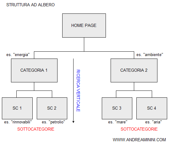 Le tassonomie verticali contengono tutti i contenuti pertinenti con le caratteristiche della categoria principale. In un albero logico le tassonomie verticali sono i rami disposti in profondità, ossia le sottocategorie.
