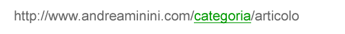 - Data nell'indirizzo Url. Le date sono da preferirsi alle categorie nella scelta delle cartelle e del path interno ma soltanto se si vuole imprimere un forte legame tra il contenuto dell'articolo e un determinato istante temporale ( es. blog, giornali online, ecc ). Sono utili per organizzare i contenuti nei giornali online, dove la produzione degli articoli è frequente e gli archivi sono enormi.