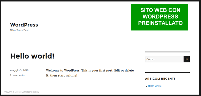 Senza dilungarmi oltre, l'aspetto positivo è che non devo fare più altro, né installare, né configurare Wordpress. Il sito web è già online ed è visibile su internet. Devo solo aggiungere i contenuti e scegliere l'aspetto grafico.