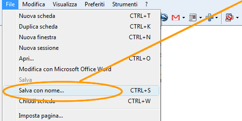 Possiamo vedere il codice Html di una pagina anche con un comune editor di testo. Il processo è però un pò più lungo. Come prima cosa, dobbiamo salvare la pagina web sul nostro computer di casa. In genere la funzionalità "Salva la pagina" si trova in tutti i browser sotto la voce di menù "File".