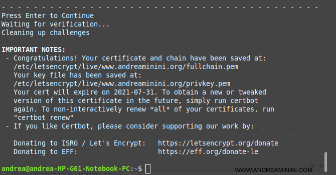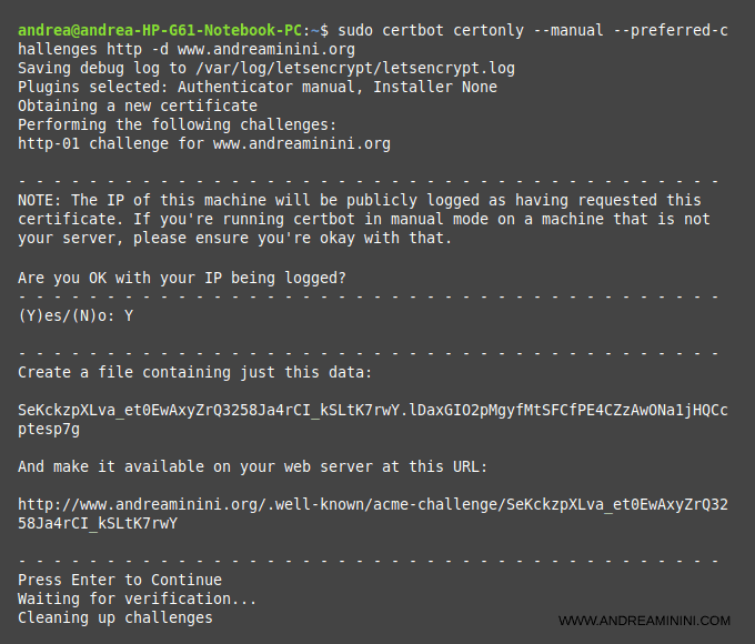 sudo certbot certonly --manual --preferred-challenges http -d www.andreaminini.org
