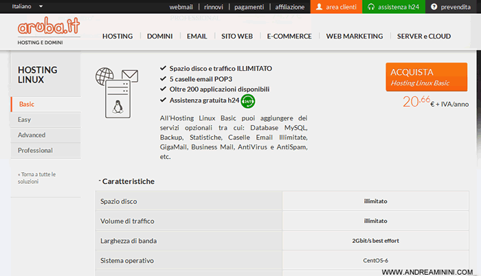 Su Aruba si può registrare un dominio con uno spazio hosting su server Linux.