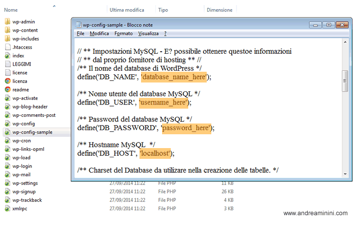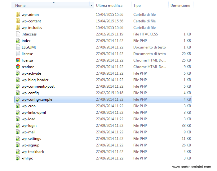 Poi cerco il file di configurazione wp-config-sample.php.