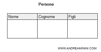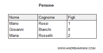 Il precedente comando crea la tabella Persone con 3 colonne (Nome, Cognome, Figli).