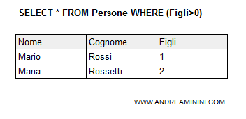 SELECT * FROM Persone WHERE ( Figli > 0 )