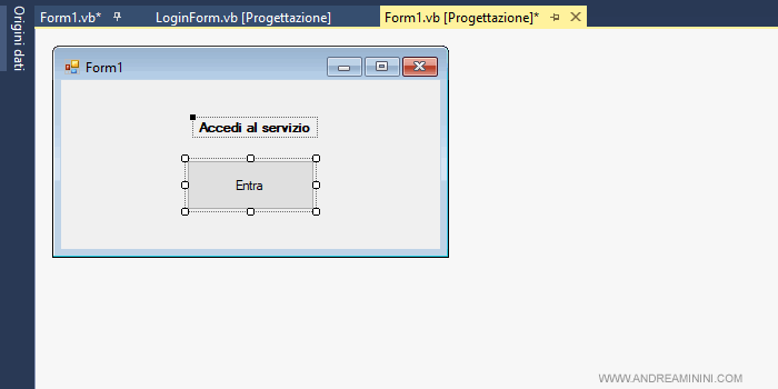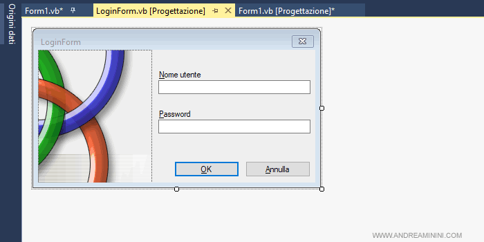 Ora torno sulla LoginForm e clicco sul pulsante OK per aggiungere il codice di programmazione.