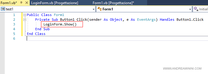 Nell'evento Click aggiungo il comando LoginForm.Show().