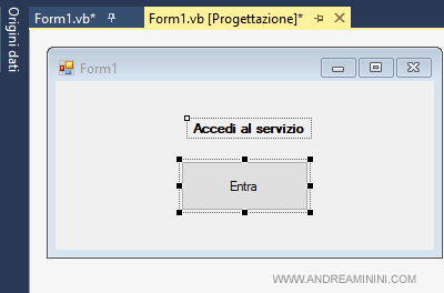 Poi aggiungo una Label con il testo "Accedi al servizio" e un Button "Entra".