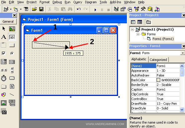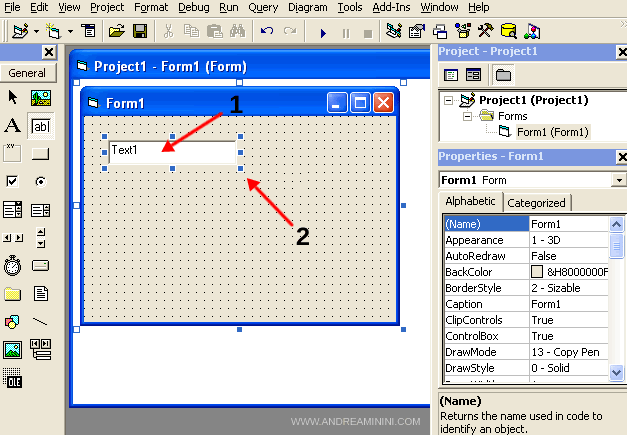 Quando rilascio il dito dal pulsante del mouse, VB6 aggiunge la textbox alla form.