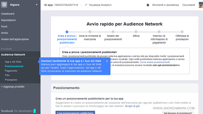 Per creare un account su Audience Network vado sulla pagina developers.facebook.com/docs/audience-network