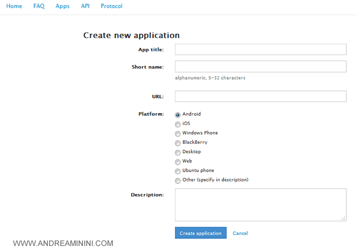 Dopo aver compilato tutto, bisogna cliccare sul pulsante Create Application situato più in basso.